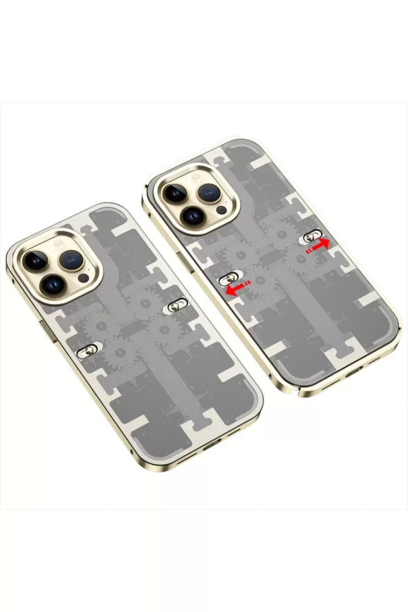 Newface iPhone 14 Pro Kılıf Mekanik Bumper Kapak – Gold