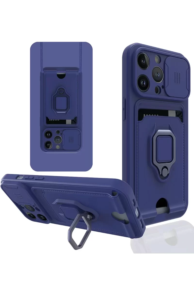 Newface İphone 14 Pro Kılıf Zuma Kartvizitli Yüzüklü Silikon – Lacivert