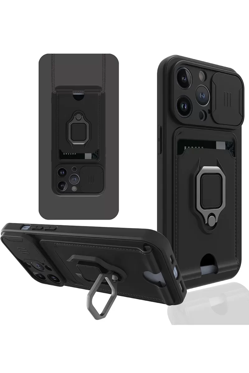 Newface İphone 14 Pro Kılıf Zuma Kartvizitli Yüzüklü Silikon – Siyah