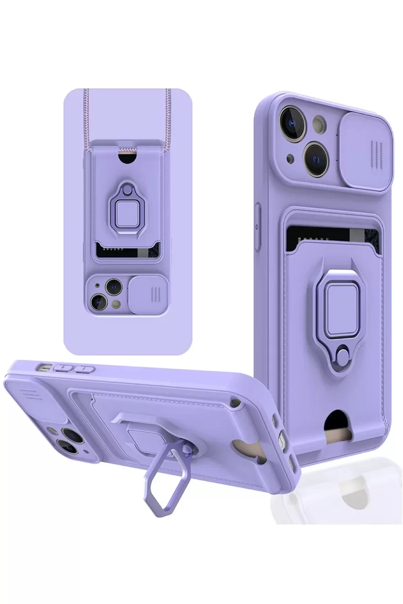 Newface İphone 15 Kılıf Zuma Kartvizitli Yüzüklü Silikon – Lila