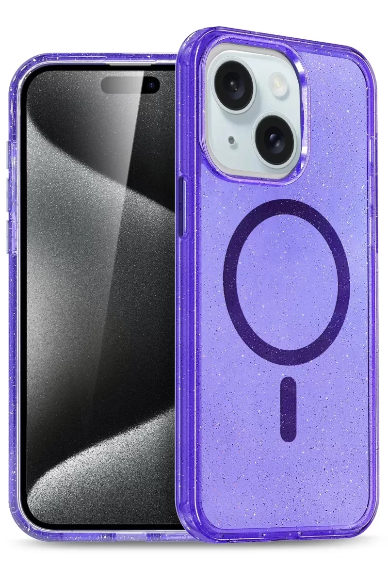 Newface İphone 15 Plus Kılıf Star Magsafe Kapak – Mor
