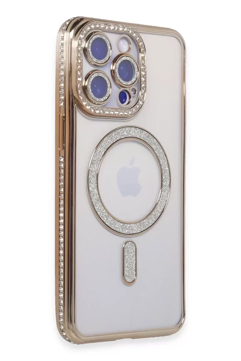 Newface İphone 15 Pro Kılıf Joke Simli Magneticsafe Kılıf – Gold