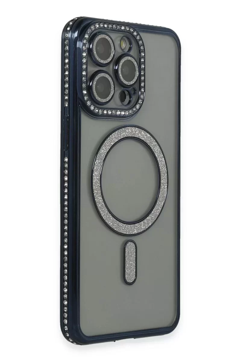 Newface İphone 15 Pro Kılıf Joke Simli Magneticsafe Kılıf – Lacivert