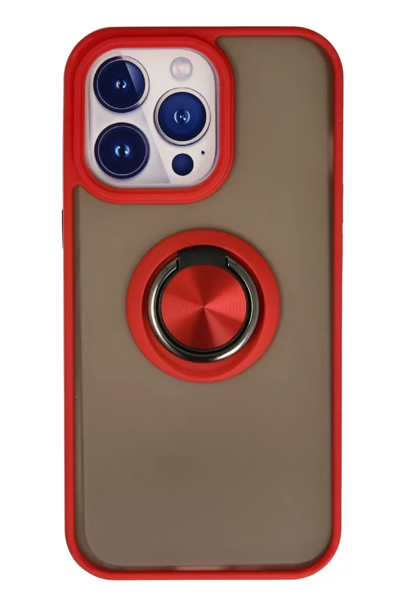Newface İphone 15 Pro Kılıf Montreal Yüzüklü Silikon Kapak – Kırmızı
