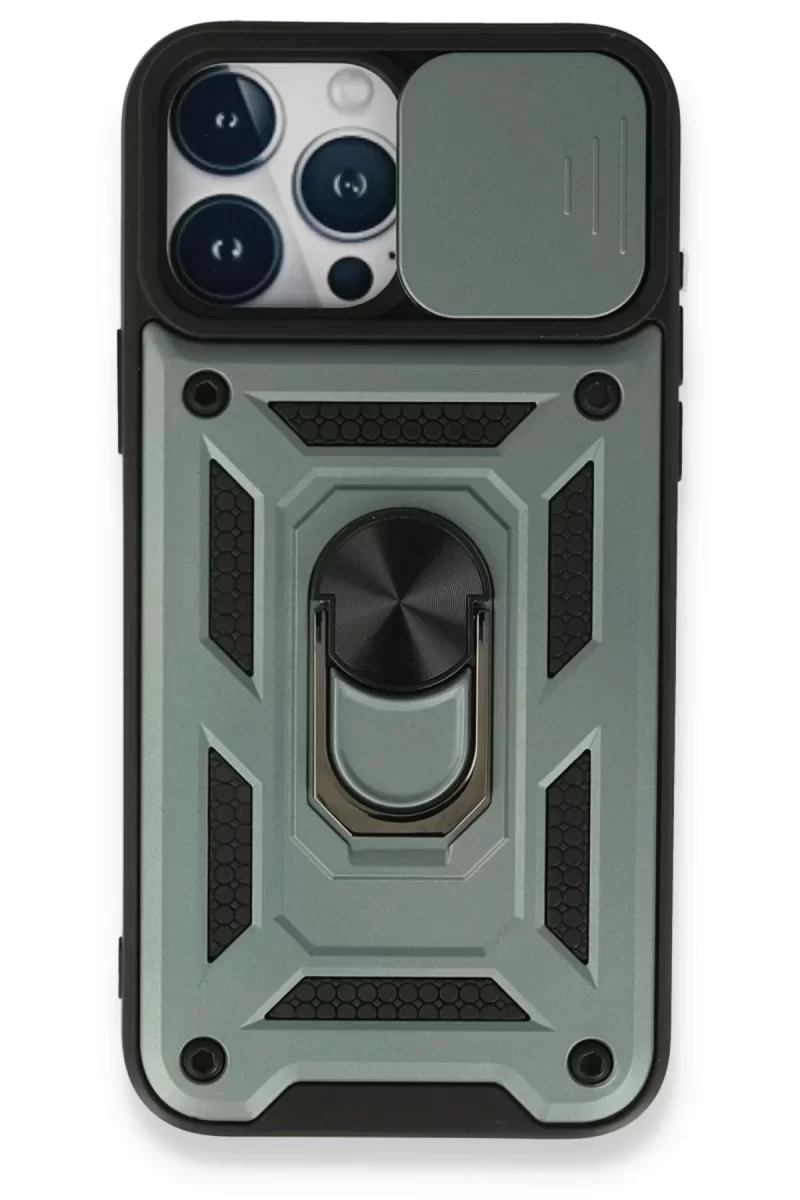 Newface İphone 15 Pro Kılıf Pars Lens Yüzüklü Silikon – Yeşil