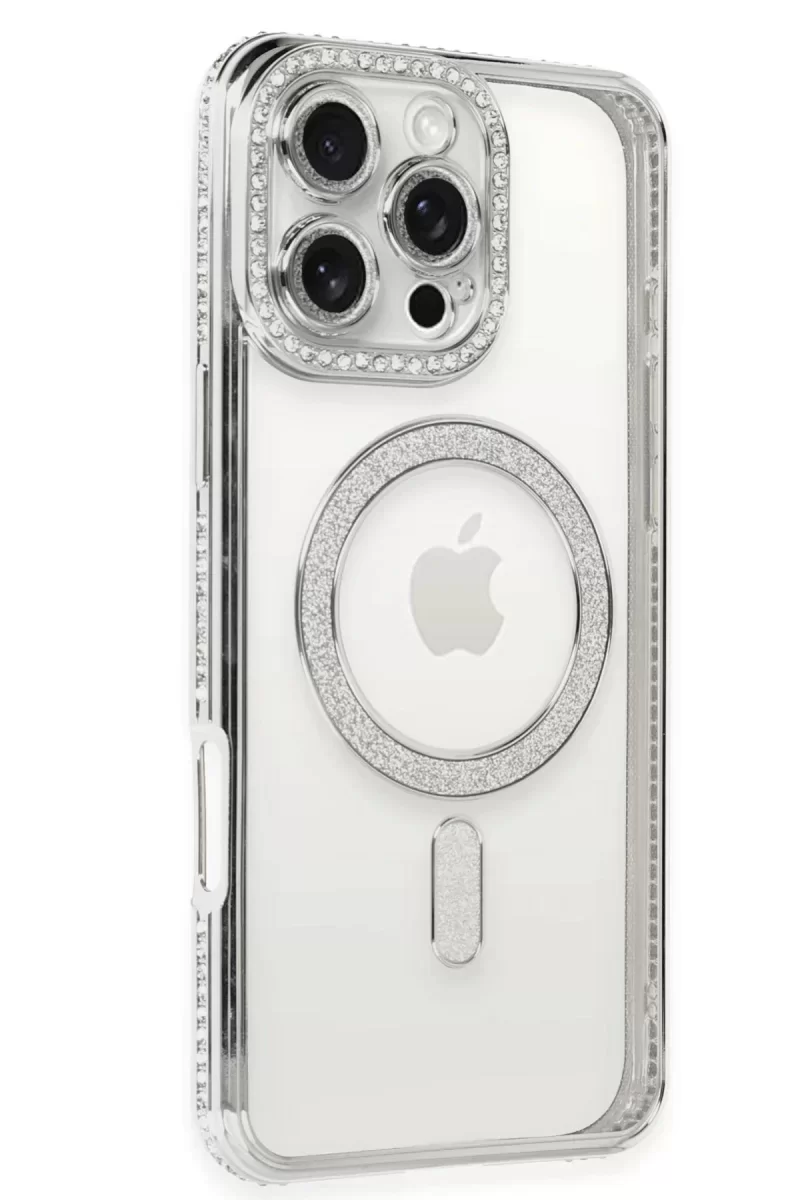 Newface iPhone 16 Pro Kılıf Joke Simli Magneticsafe Kılıf – Gümüş