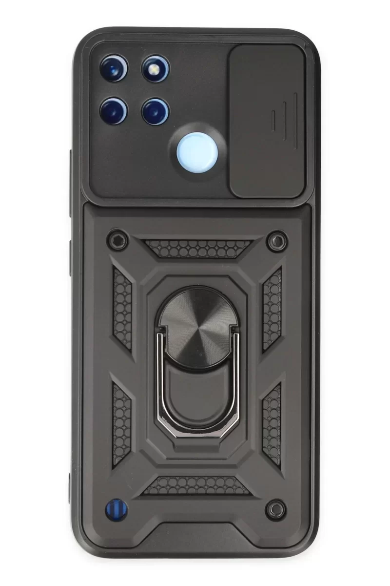 Newface Realme C25Y Kılıf Pars Lens Yüzüklü Silikon – Siyah