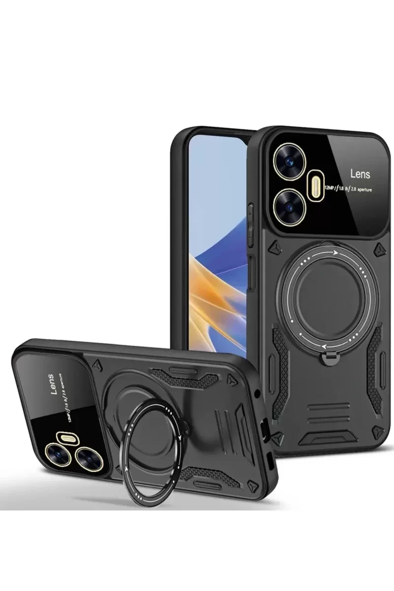 Newface Realme C55 Kılıf Joy Lens Standlı Kapak – Siyah
