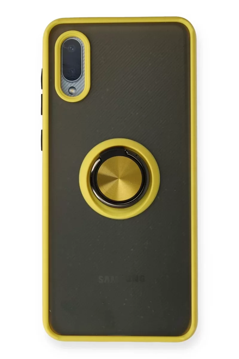 Newface Samsung Galaxy A02 Kılıf Montreal Yüzüklü Silikon Kapak – Sarı