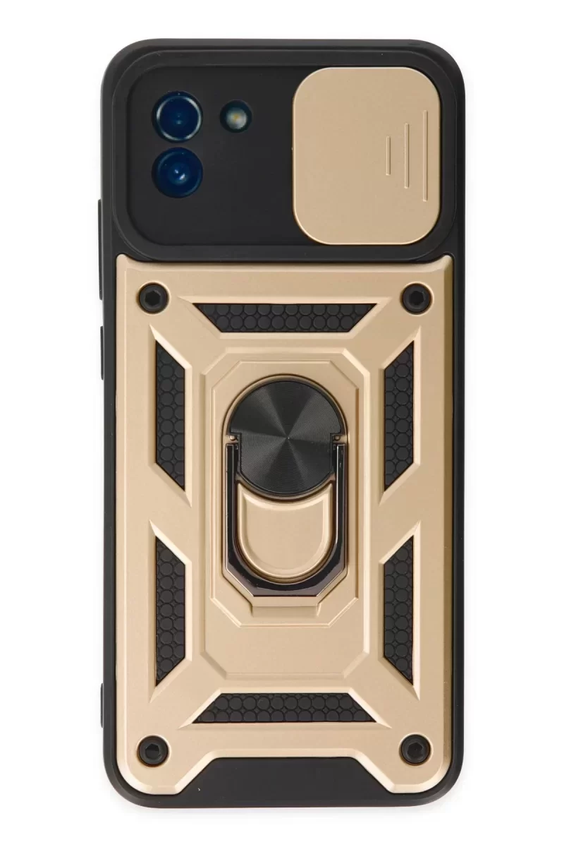Newface Samsung Galaxy A03 Kılıf Pars Lens Yüzüklü Silikon – Gold