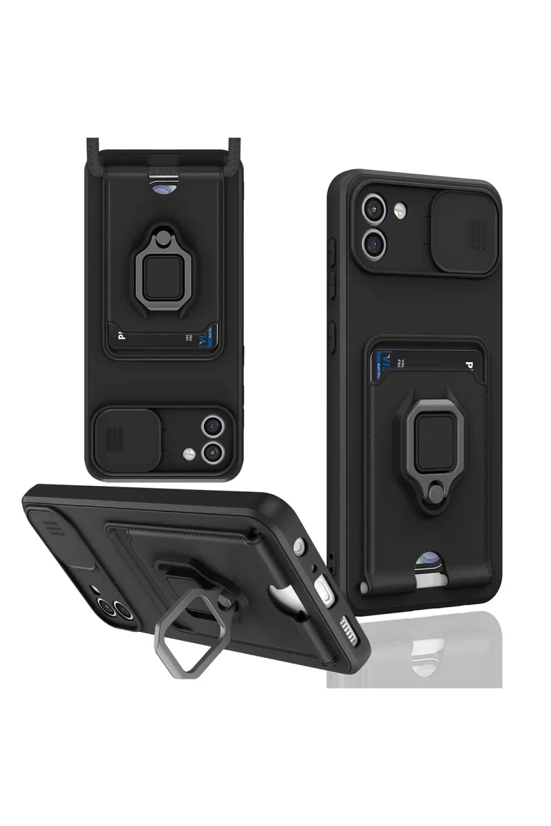 Newface Samsung Galaxy A03 Kılıf Zuma Kartvizitli Yüzüklü Silikon – Siyah