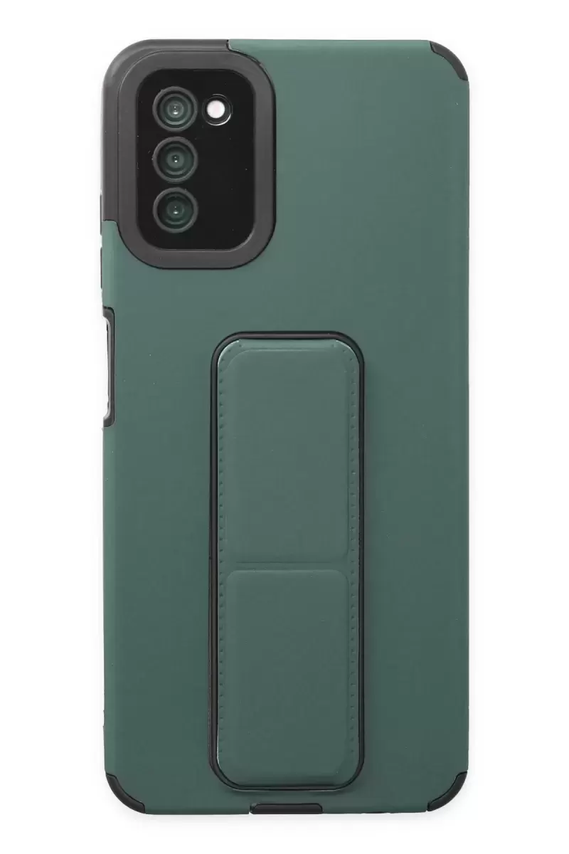 Newface Samsung Galaxy A03S Kılıf Mega Standlı Silikon – Yeşil