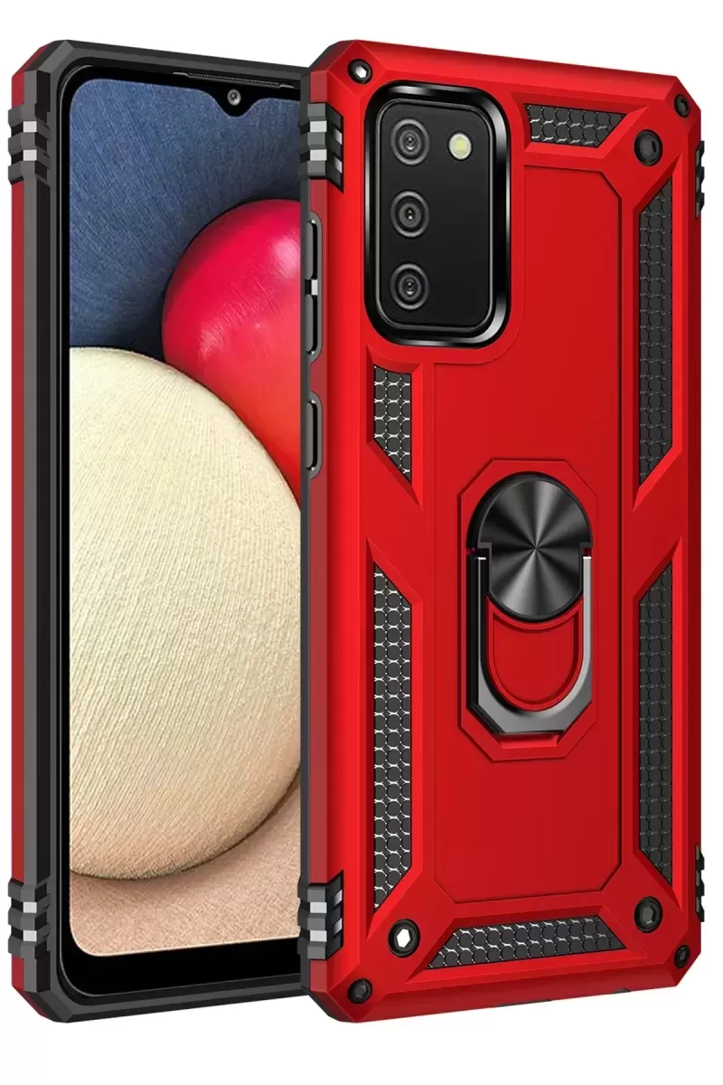 Newface Samsung Galaxy A03s Kılıf Sofya Yüzüklü Silikon Kapak – Kırmızı