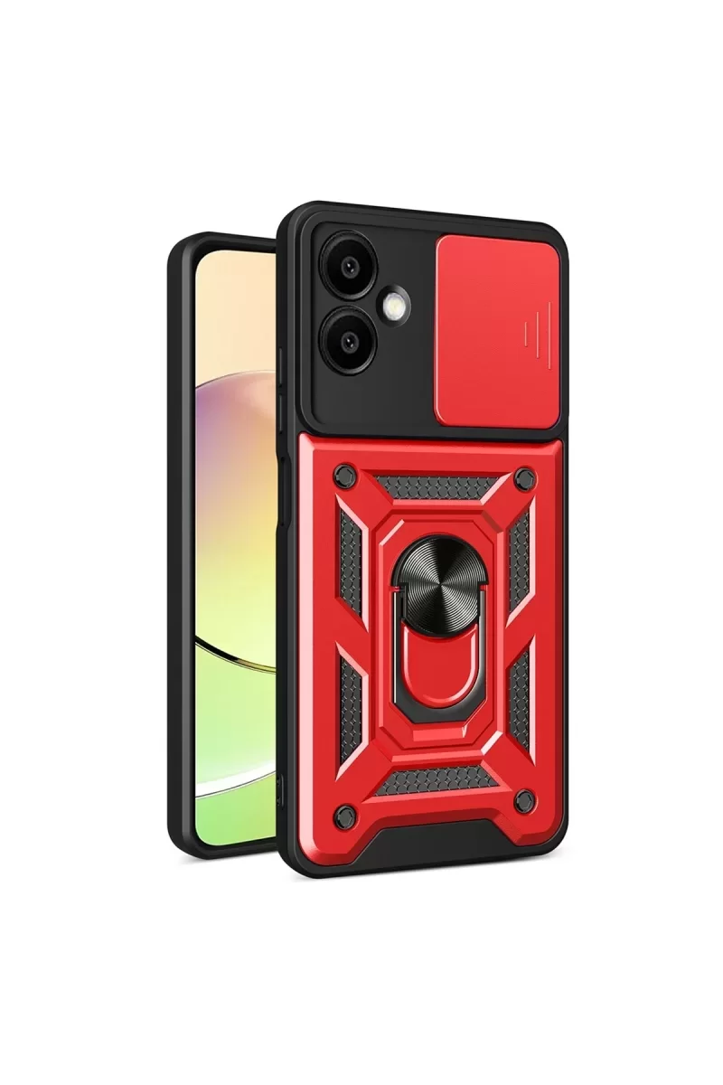 Newface Samsung Galaxy A06 Kılıf Pars Lens Yüzüklü Silikon – Kırmızı