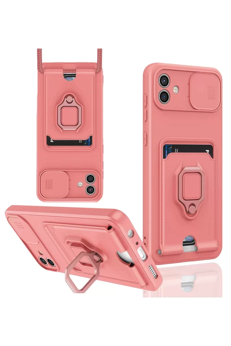 Newface Samsung Galaxy A06 Kılıf Zuma Kartvizitli Yüzüklü Silikon – Pembe