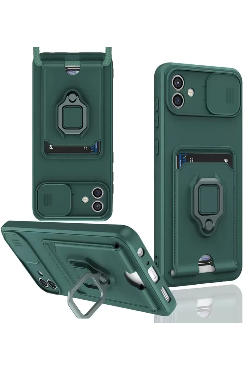 Newface Samsung Galaxy A06 Kılıf Zuma Kartvizitli Yüzüklü Silikon – Yeşil