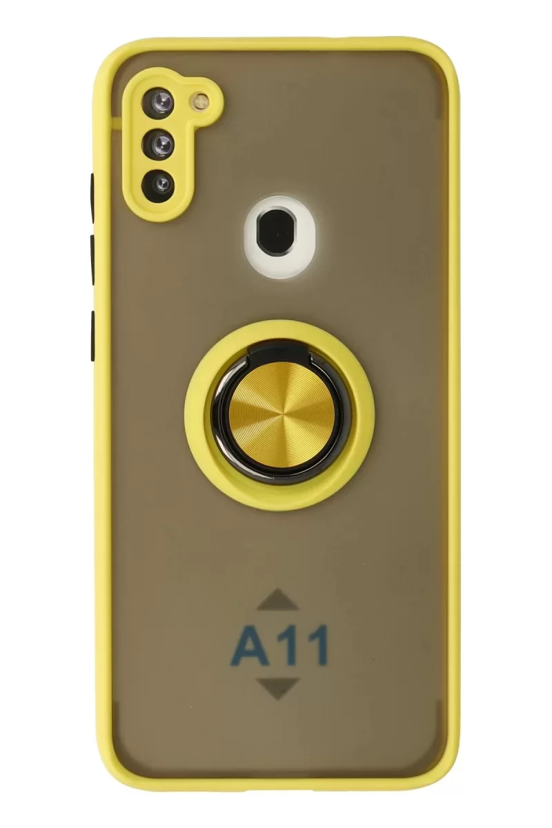 Newface Samsung Galaxy A11 Kılıf Montreal Yüzüklü Silikon Kapak – Sarı