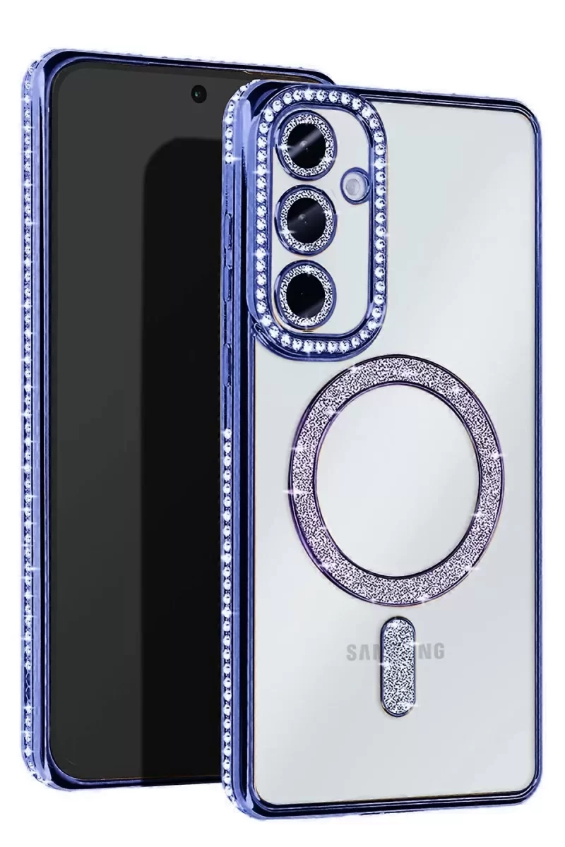 Newface Samsung Galaxy S25 Kılıf Joke Simli Magneticsafe Kılıf – Mavi