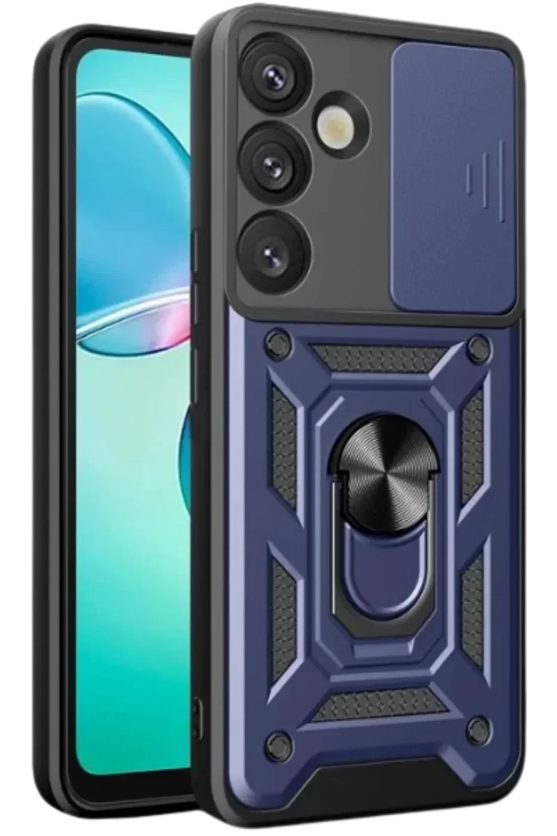 Newface Samsung Galaxy S25 Kılıf Pars Lens Yüzüklü Silikon – Lacivert