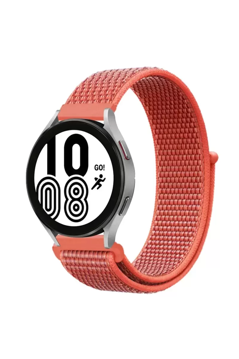Newface Samsung Galaxy Watch 4 Hasırlı Cırtcırtlı Kordon – Turuncu