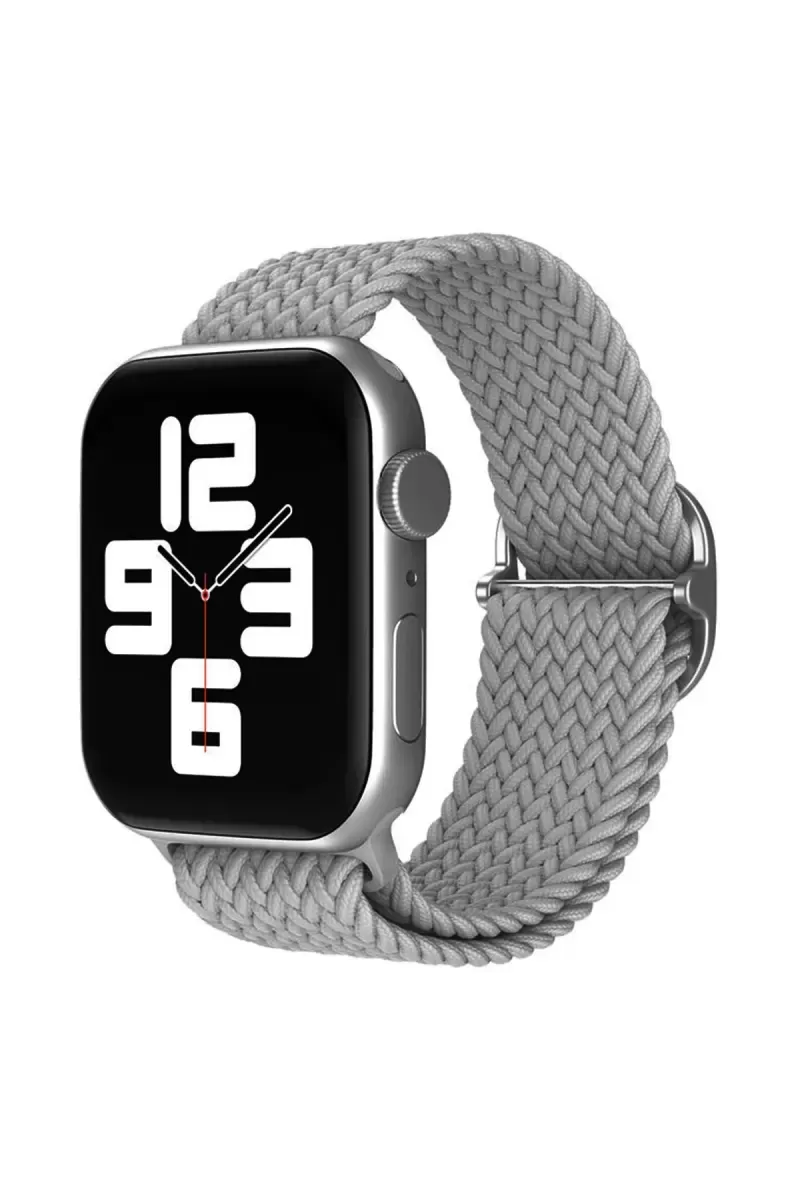 Newface Apple Watch 38mm Hasırlı Cırtcırtlı Kasalı Kordon - Pudra