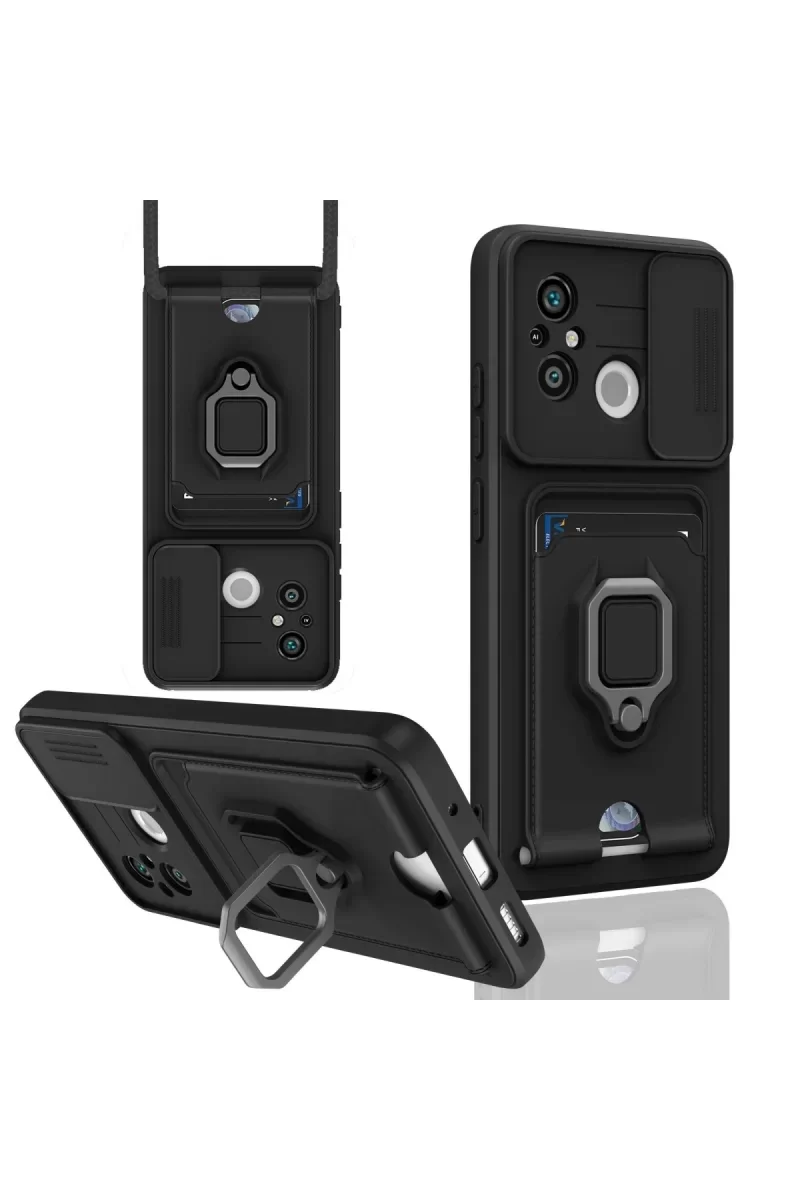 Newface Xiaomi Redmi 12c Kılıf Zuma Kartvizitli Yüzüklü Silikon – Siyah