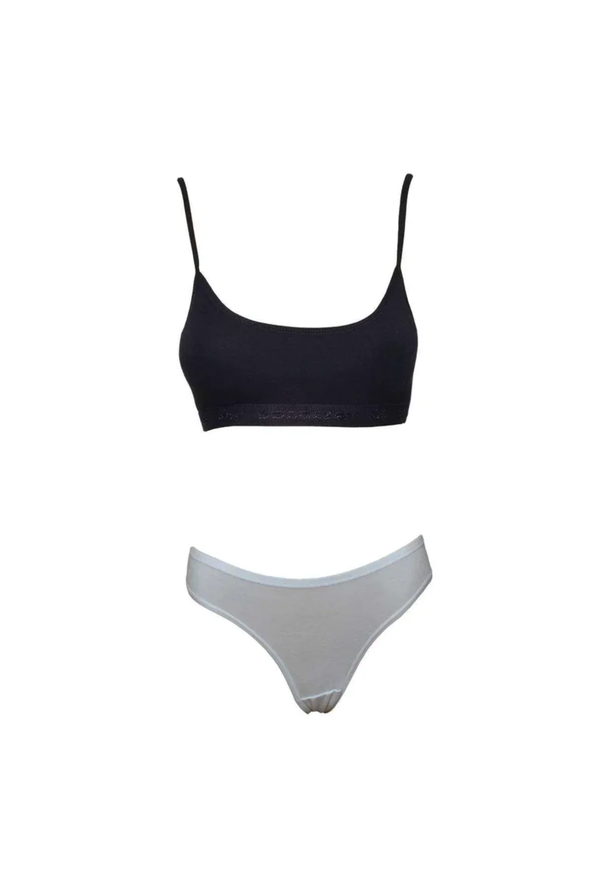 Pedli İp Askılı Yarım Atlet Büstiyer Külot Takım Siyah Beyaz