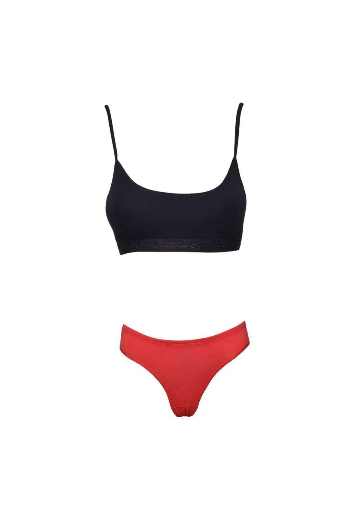 Pedli İp Askılı Yarım Atlet Büstiyer Külot Takım Siyah Kırmızı