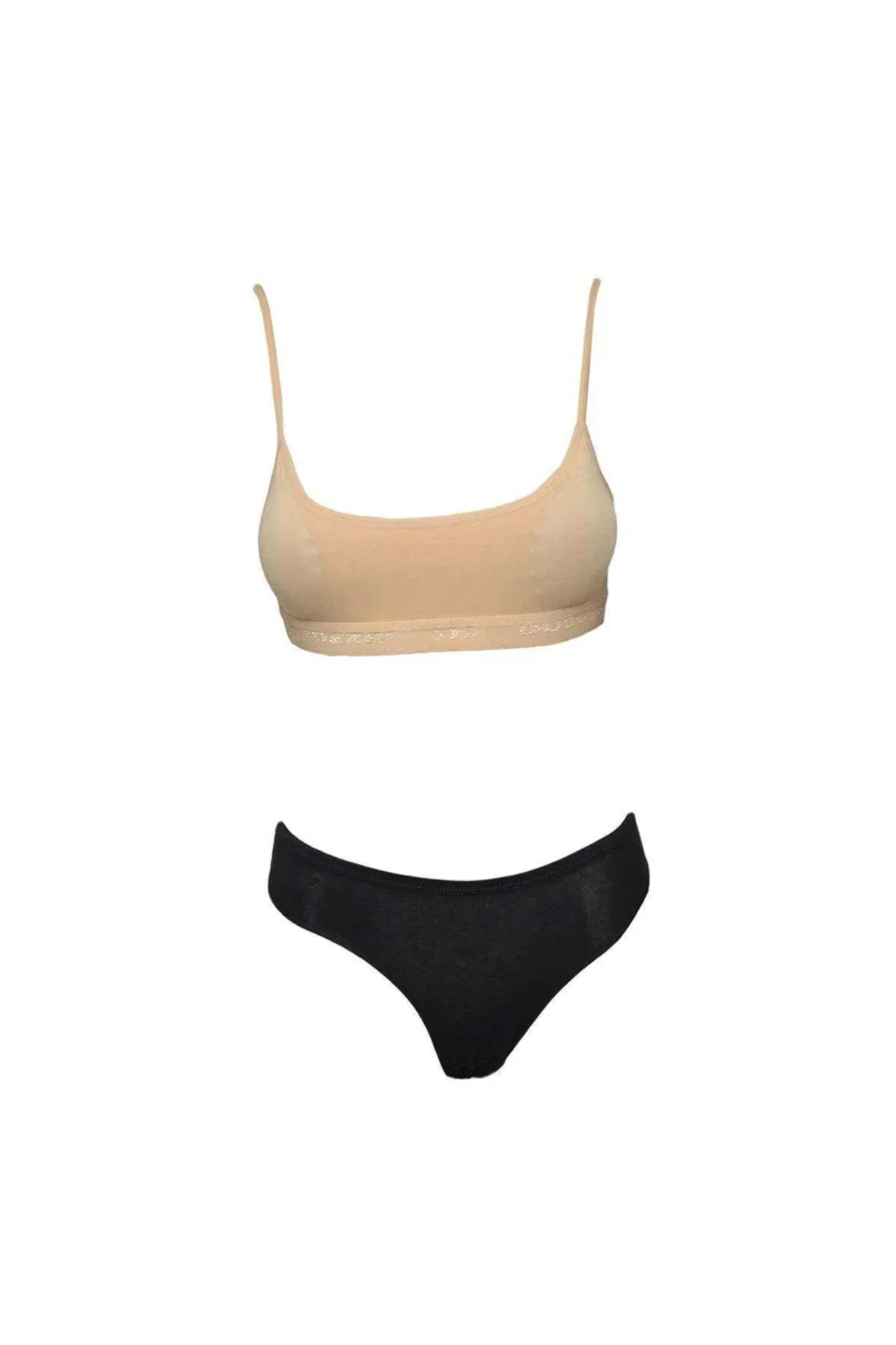 Pedli İp Askılı Yarım Atlet Büstiyer Külot Takım Ten Siyah