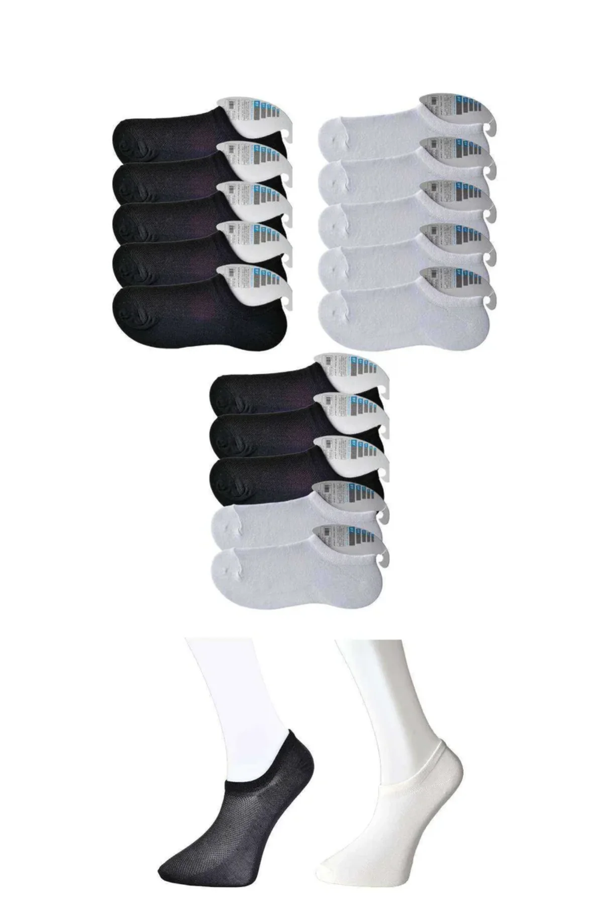 Siyah ve Beyaz Erkek Görünmez Çorap 15 çift