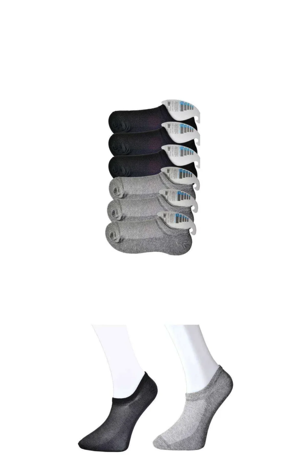 Siyah ve Gri Erkek Görünmez Çorap 6 çift