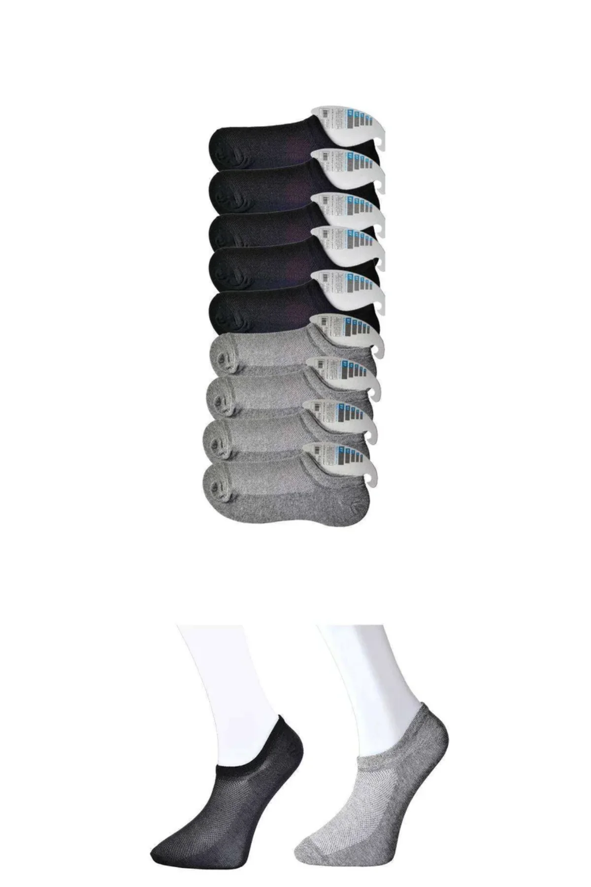 Siyah ve Gri Erkek Görünmez Çorap 9 çift