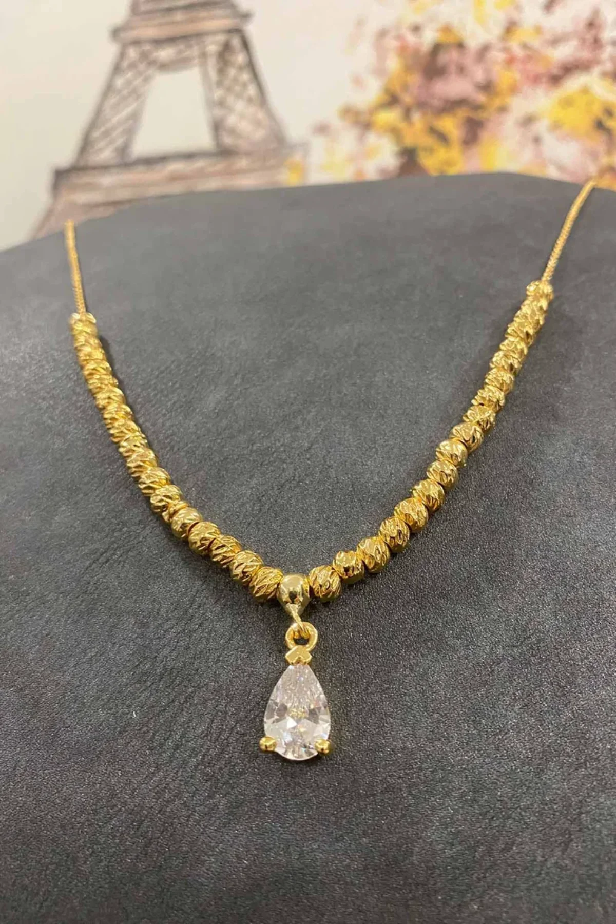 Zirkon Taş Uçlu Altın Kaplama Tasarım Kolye 40 cm