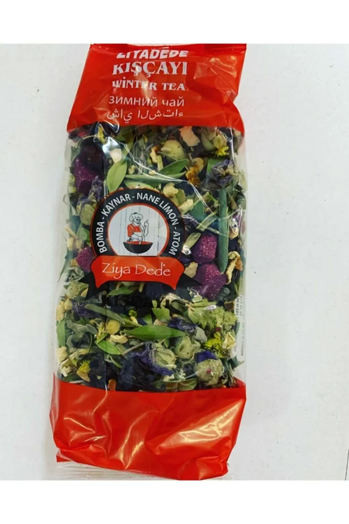 | Ziya Dede Kış Çayı Mersin yaprağı, zeytin yaprağı, Altınotu, hatmi çiçeği, Adaçayı kuşburnu Atom çayı Hibisküs portakal kabuğu içeren karışık kış çayı |